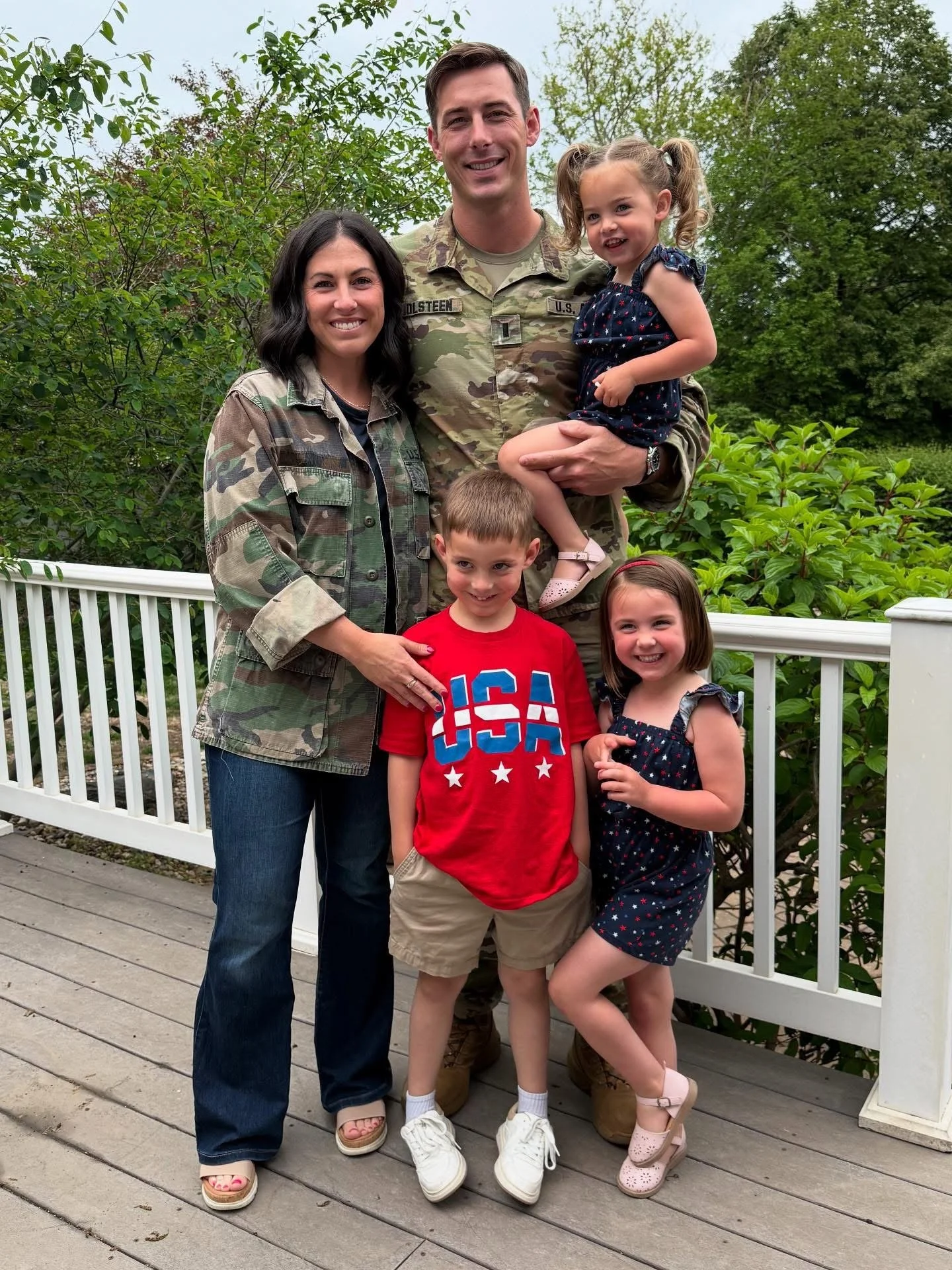 “We are the Holsteen family--Jake, Katy, Graham (6), Collins (4), Rory (3) and Hank (dog). Jake is a Des Moines Police Officer and 1LT with the Army National Guard. He is currently deployed overseas. I hold down the fort at home with the 3 littles. Graham started Kindergarten this year. Collins is in preschool and Rory is home with Mama. We are missing Jake terribly, but we are so proud of all service men and women and the sacrifices they make along with their families. We are very humbled and grateful to be loved on this holiday season while Daddy is away.”